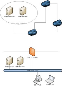 構成するサーバーとネットワークを、下図に示す。○で囲まれたところが、対象となるサーバー群だ。