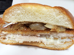 シャンピニオンソースとローストオニオンは、野菜のうま味が出ています。ソースとオニオン、普通の人には甘くておいしいと思います!私は野菜の甘みが苦手という少数派なので、ソースとオニオンの感想はひかえます。ポテトフィリングは結構なボリュームです!主役のはずのポークシュニッツェルは、あまり存在を主張してきません。全体的なボリューム感はばっちりなんですけどね。